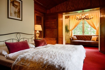Pokoje umístěné v původní budově historické vily jsou ideální pro hosty, kteří vyhledávají atmosféru s duší. Ubytují se zde lidé, kteří ocení autentické prvky, masivní dřevo, historii místa a klid, který se v moderních stavbách jen těžko napodobuje. Perfektní volba pro páry, milovníky tradice, romantiky i pro ty, kteří si chtějí dopřát pobyt s výjimečnou atmosférou. Kombinace původního šarmu a současného komfortu vytváří unikátní zážitek, který se nedá nahradit.